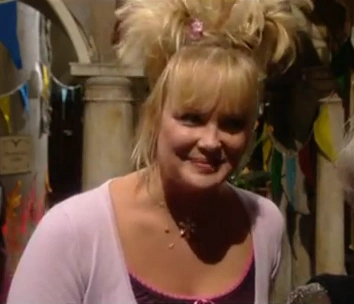 She first walks into Cackle's with a rather enthusiastic 'Hello' to everyone, but then breezes right past them before spotting Miss Cackle. She seems not to be bothered by the attempts of the students to save the building the school is in now from being turned into a money earner. For most of the episode, she appears to be a normal ditzy blonde but that changes by the end. At varying points, she also displays arrogant traits which appall other characters.