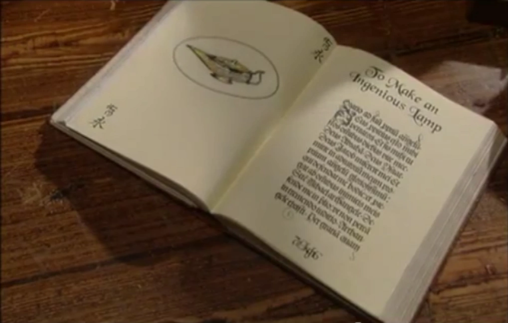 Has instructions for making a magic lamp. Kept in Fenella’s room. (The Genius of the Lamp) |