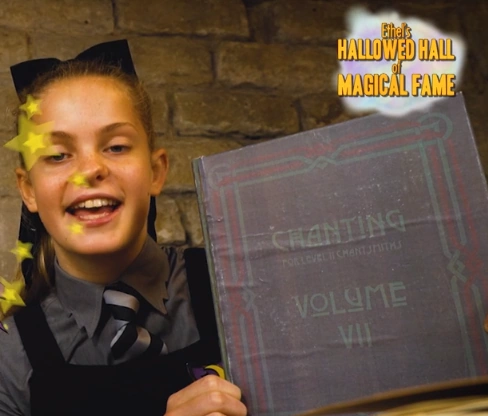 Used by Julie Hubble to attempt to shrink a dress to he right size, but she shrunk Mildred by mistake, then turned her into a doll. Volume One contains the the spell to change the size of clothes. The reversal spell is in volume two. (2017 TV Series) |